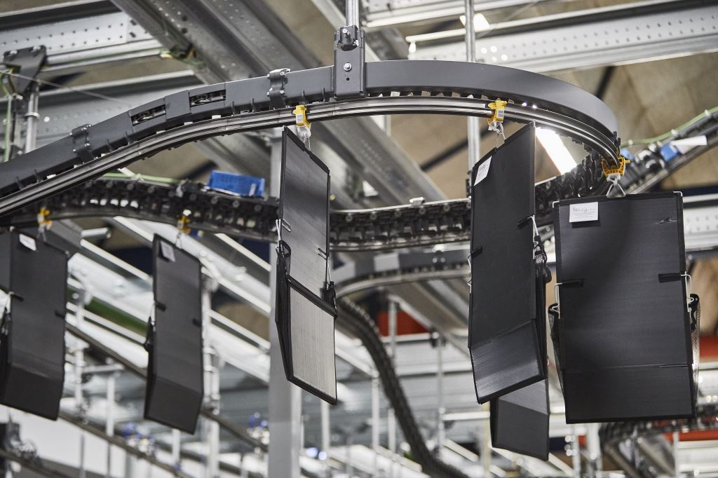 En la parte final, cuatro módulos de secuenciación conducen los productos a una de las dos estaciones de descarga automática de bolsas. En las dos estaciones de descarga, se pueden vaciar hasta 1.500 bolsas por hora y los productos quedan preparados para colocarlos en cajas. A continuación, esas cajas se precintan, ponen en palés y se embalan para su envío. El flujo de materiales se ha concebido para obtener la máxima eficiencia, con una alta capacidad de producción y una rápida capacidad de respuesta a cambios en la demanda.