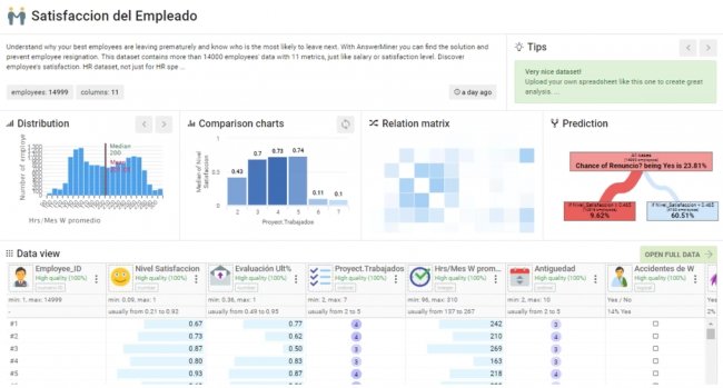 Answerminer es una herramienta sencilla y muy asequible para usuarios no técnicos y tampoco estadísticos ni matemáticos para poder interrelacionar datos, analizarlos y montar modelos predictivos en diversas áreas.