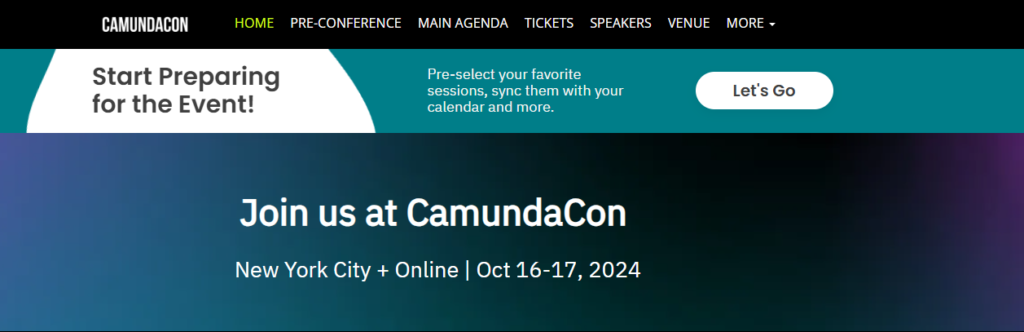 Esto del Online es una pasada. Podemos asistir en directo a la mayoría de ponencias que durante 2 días tendrán lugar en Nueva York los próximos 16 y 17 de octubre dentro de la Conferencia para partners, clientes y empleados del fabricante de software BPM Camunda.