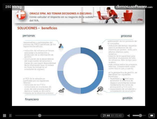 En este webinar, realizado el 19 de julio de 2012, muestra cómo Oracle ECM (Hyperion) puede ayudar a solucionar estas problemáticas. El ponente, Rui Marques, especialista en ECM de la consultora BingConsulting, explica cómo esta herramienta permite evitar tomar decisiones a oscuras, disponer de la información fiable para responder a todo tipo de cuestiones críticas derivadas de la situación económica actual y a que la toma de decisiones le resulte más sencilla.