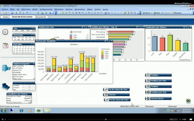 El curso está dividido en dos grandes partes principales: la primera consta de la introducción a QlikView conociéndose y navegando la herramienta, se ven todos sus componentes y funcionalidades a detalle, todos los tipos de gráficos, iconos, etcétera.