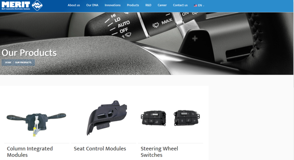 Merit es una compañía creada en los años 40 en Alemania para diseñar y fabricar interruptores. En 1996, Merit fue adquirida por Delphi, quien la combinó con otra adquisición de Eaton para crear una línea de productos llamada Mechatronics. En 2016, DELPHI vendió esta línea de productos a Northeast Industries de China. A principios de 2017, con el apoyo del nuevo propietario, Merit se realineó y comenzó de nuevo como una empresa independiente, con sede en Barcelona, centro de investigación en Cracovia y con instalaciones en Gdansk, Matamoros y Changchun, siguiendo la huella de la globalización de fabricantes de automóviles.La fábrica de Merit Barcelona ha acumulado más de 70 años de experiencia en la producción de interruptores, desde interruptores simples hasta productos de interfaz humana de hoy en día, incluido el desarrollo y la fabricación de módulos de interruptores de dirección, interruptores de columna de dirección, elevalunas, interruptores iniciales, interruptores térmicos de asientos para todo el mundo. industria automotriz y mercado de posventa, con una calidad confiable, un diseño innovador y una producción optimizada en costos.