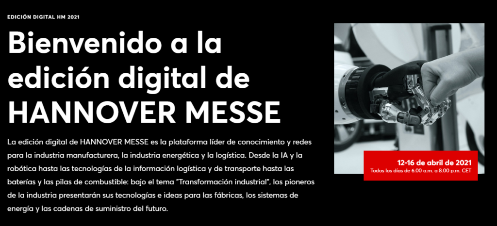 La Hannover Messe, una feria (ahora virtual) sobre tecnologías e Innovación para la Industria, ha presentado esta mañana la nueva edición que se celebrará del 12 al 16 de abril con múltiples e interesantes conferencias (en inglés o traducidas al inglés la mayoría) y con una zona de expositores.