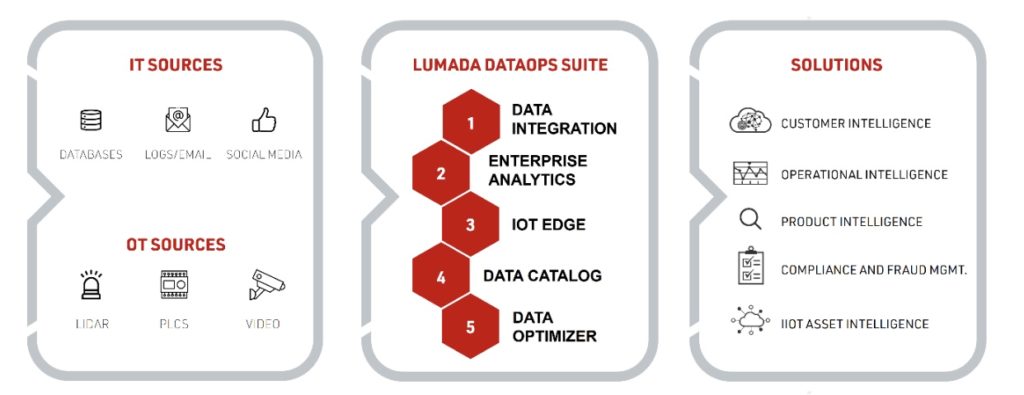 Lumada se compone de las soluciones y servicios digitales avanzados de Hitachi para convertir los datos en conocimientos que impulsen la innovación digital. Lumada DataOps Suite es una plataforma de software modular que incluye integración, análisis y catalogación de datos y herramientas de inteligencia Edge que ayudan a conectar datos, activos y personas para impulsar la innovación. Diseñada con una moderna arquitectura nativa de la nube, la Lumada DataOps Suite proporciona una base escalable para diferentes productos de software de Lumada que pueden girar hacia arriba y hacia abajo a través de múltiples proveedores de la nube, lo que aumenta la agilidad para gestionar las operaciones de datos a escala, al tiempo que reduce el coste a través de implementaciones en contenedores.