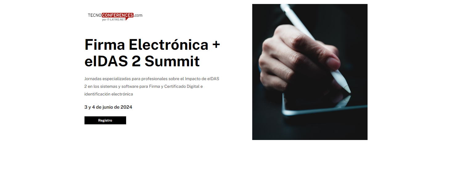 El día 3 y 4 de junio de 2024 estaremos realizando la jornada sobre Firma Electrónica + eIDAS 2 Summit apúntate aqui