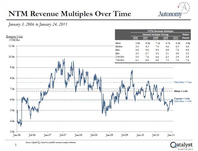 Publicamos los dos Power Point que Mike Lynch, CEO de Autonomy, presentó, según Oracle, al responsable de Mergers and Adquisitions de Oracle, en abril del 2011. El asunto está siendo utilizado por Oracle para resaltar que no compró Autonomy porque le parecía muy caro el precio que el CEO de Autonomy pedía y que finalmente se comprometió a pagar HP. Un artículo de Dennis Howlett en ZDNet vincula precisamente esta decisión de HP con el despido de Leo Apotheker como CEO de la empresa.