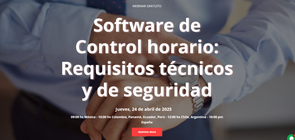 Organizamos un webinar el próximo 24/4/2025 a las 4 PM España en el que vamos a dar una visitón técnica de lo que creemos que es necesario para que un software de Registro Horario cumpla con los requisitos normativos.